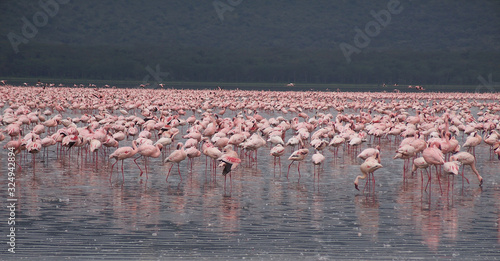 © Lisa, Naklejka premium pink flamingos in the lake