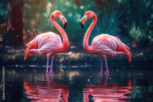 © Alina, Fototapeta premium Pink flamingos standing in a lake