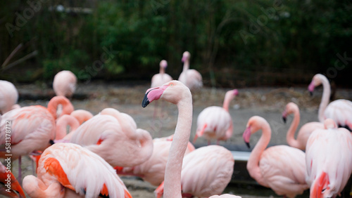 Naklejka premium Pink Flamingos und Flamingoköpfe im Zoo in Hannover