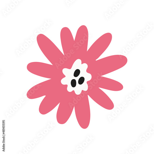 Obraz premium Pink flat flower. Romantic vector hand drawn doodle element