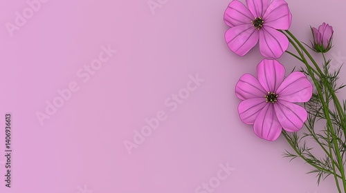 © AssanAI.Studio, Fototapeta premium Pink Floral Design with Cosmos Flowers on Soft Pink Background