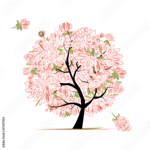 © Kudryashka, Fototapeta premium Pink floral tree, sketch for your design