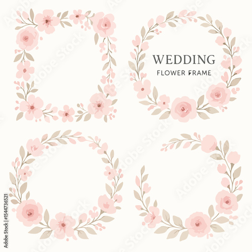 Fototapeta premium Pink floral vector frame with roses and decorative flower elements for...