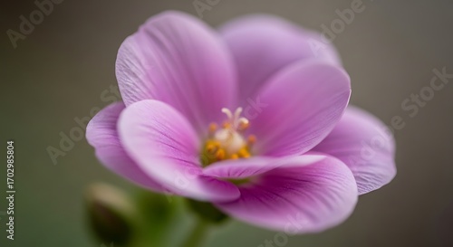 © Dewi, Fototapeta premium Pink Flower Blooming in Soft Natural Light with Delicate Petals and Bright Yellow Center