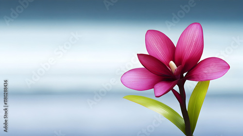 © Nadiyah, Fototapeta premium Pink flower blossom, serene ocean background, nature peace, website banner design.