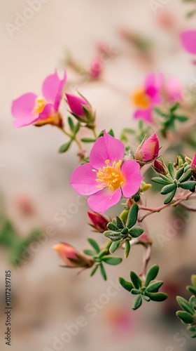 Fototapeta premium Pink Flower Blossom with Delicate Petals and Green Leaves