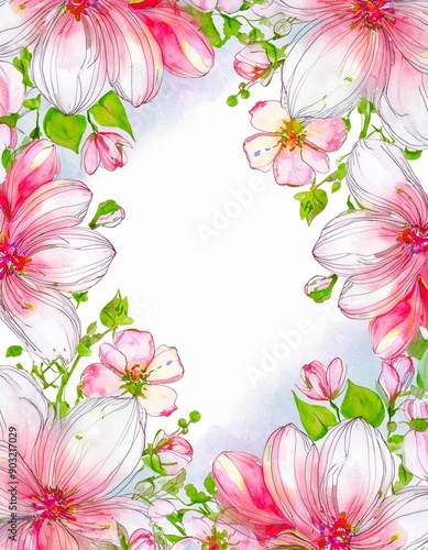 © Janet, Fototapeta premium pink flower frame border