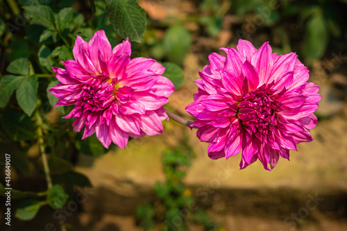 Obraz premium pink flower fully bloomed close up shot with blurred background and space for...
