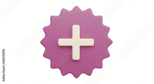 © Image, Fototapeta premium Pink flower shape with a plus sign inside. Addition symbol on abstract blossom, flat style. Graphic design elements with vivid colors.
