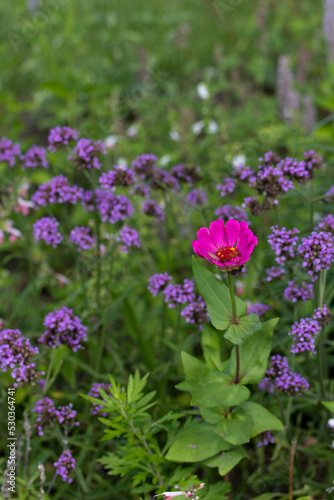 © Melina, Fototapeta premium Pink Flower Surrounded by Purple Flowers