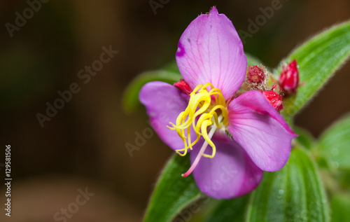 © lirtlon, Fototapeta premium Pink flower with dew in the fresh morning