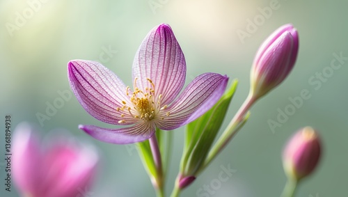 © khoirurizal1, Fototapeta premium Pink flower with linear petals, buds, and yellow center