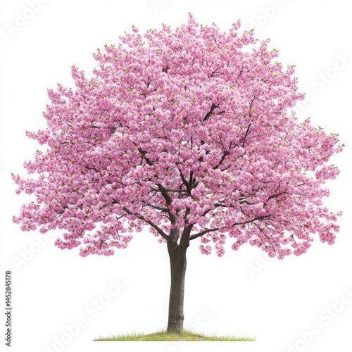 © MDALAM, Fototapeta premium Pink flowering tree full bloom on a white background