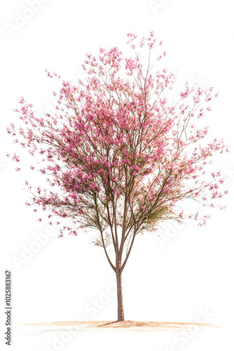 Obraz premium Pink flowering tree on a white background.