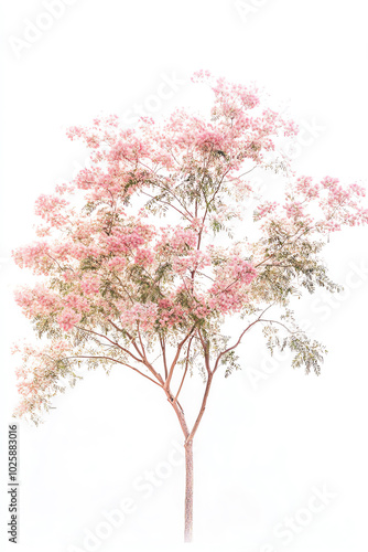 © well, Fototapeta premium Pink flowering tree, white isolated background