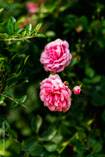 © Dan, Fototapeta premium Pink flowers against a green background