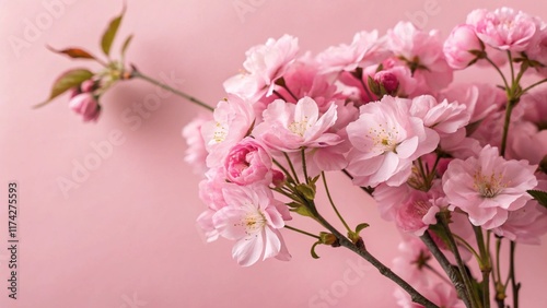 Fototapeta premium Pink Flowers Arrangement on a Soft Pink Background