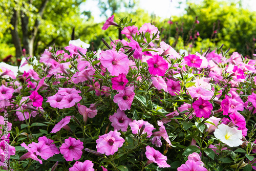 © SellStock, Naklejka premium Pink flowers bloom in the city park garden