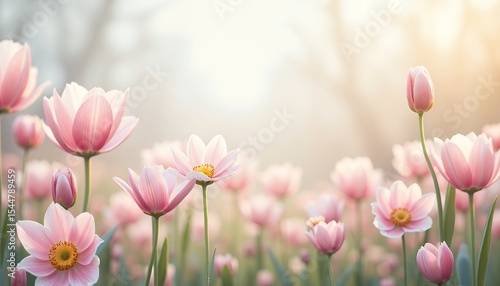 © Farid Nisuki, Fototapeta premium Pink Flowers Blooming in a Sunny Meadow