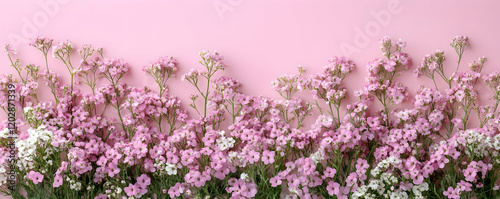 © SemangArt, Naklejka premium Pink flowers border, pink backdrop