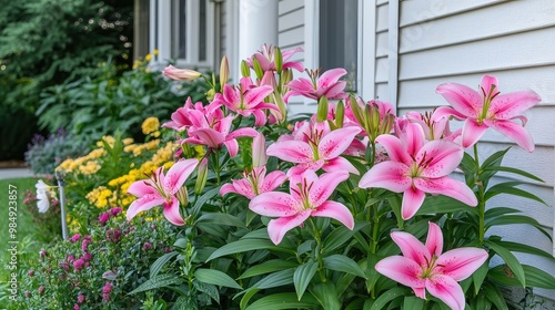 © faiz, Fototapeta premium pink flowers in a garden