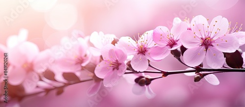 Obraz premium Pink flowers macro background. Creative banner. Copyspace image