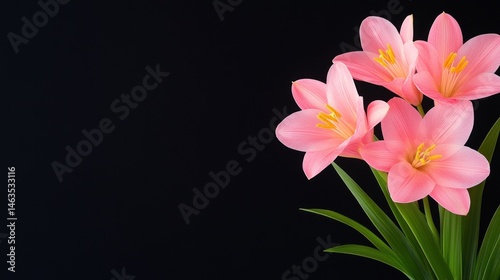Naklejka premium Pink flowers on black background elegant botanical macro photography