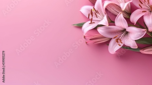 Fototapeta premium Pink Flowers on pink background with copy space, Banner Design, Generative AI