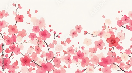 Naklejka premium Pink flowers, pink cherry blossoms, simple lines, white background, vector...