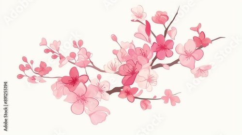 Naklejka premium Pink flowers, pink cherry blossoms, simple lines, white background, vector...