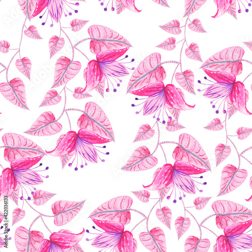 © Ellen, Naklejka premium Pink flowers rose seamless patterns