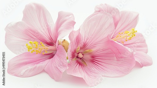 Obraz premium Pink flowers with yellow stamens on white background Isolated flower photo