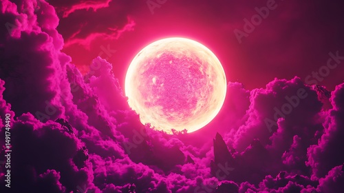 © akkun, Naklejka premium Pink full moon in dramatic cloudscape