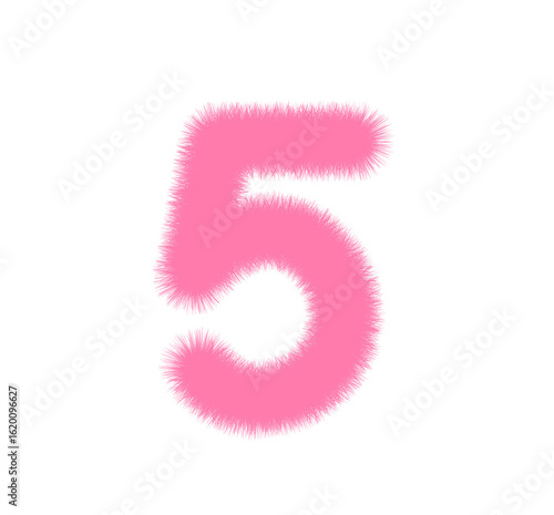 © Dipok, Fototapeta premium Pink Furry Number 2,1,3,4,5,6,7,9 on White Background