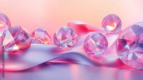 © daisha, Fototapeta premium Pink gems, silk wave, glow, backdrop