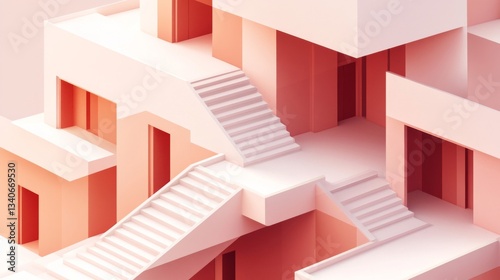Fototapeta premium Pink Geometric Building with Interconnected Stairs