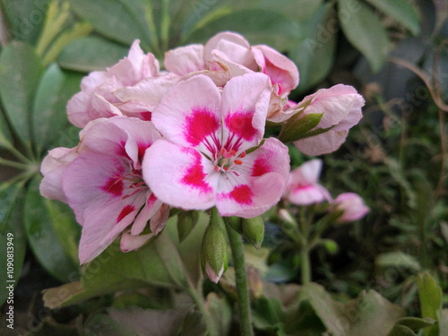 © mohamed, Fototapeta premium Pink Geranium flowers at home garden