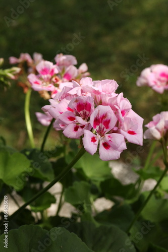 © Loraine, Fototapeta premium Pink Geraniums with Red Markings
