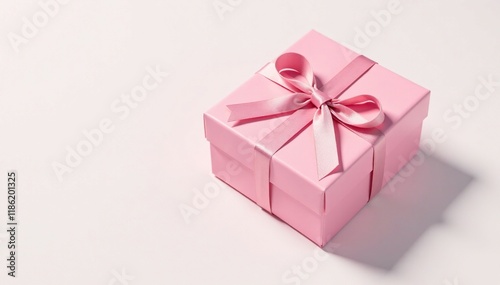 Fototapeta premium Pink gift box placed on a white background with subtle shadows, gift box, ,...