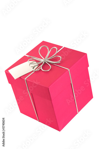 Obraz premium Pink gift box (square) with bow and tag