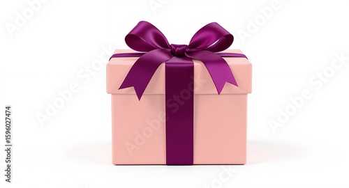 © Bear Studio, Obraz premium Pink Gift Box with Purple Ribbon Present Packaging Holiday Surprise