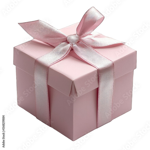 © Tusi, Obraz premium Pink gift box with ribbon isolated on transparent background cutout
