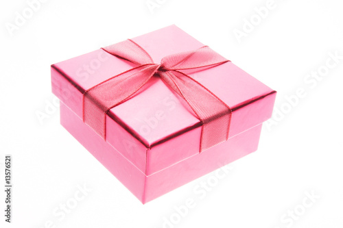 © Katie Little, Fototapeta premium Pink giftbox and ribbon (closed) on white background
