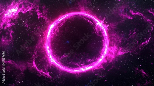 Obraz premium Pink glowing ring, surrounded by nebulae, against a star-filled cosmic backdrop