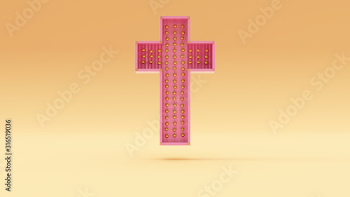 © paul, Obraz premium Pink Gold Modern Cross Warm Cream Background 3d illustration 3d render