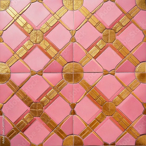 © Kristina, Fototapeta premium Pink gold tile pattern