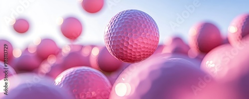 Fototapeta premium Pink Golf Balls in Mid-Air Against a Clear Blue Sky with a Soft Focus Background