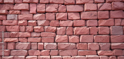 Fototapeta premium Pink granite brick wall with a unique pattern created by stacking the bricks...