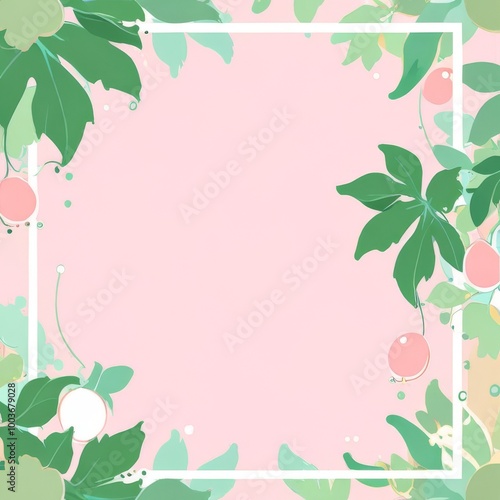 © YudhiaAsta, Fototapeta premium Pink Grapevine with Green Leaves on Pastel Background