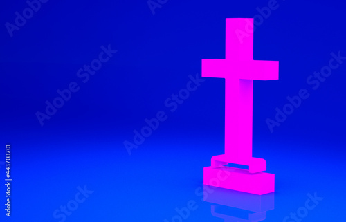 Obraz premium Pink Grave with cross icon isolated on blue background. Minimalism concept....